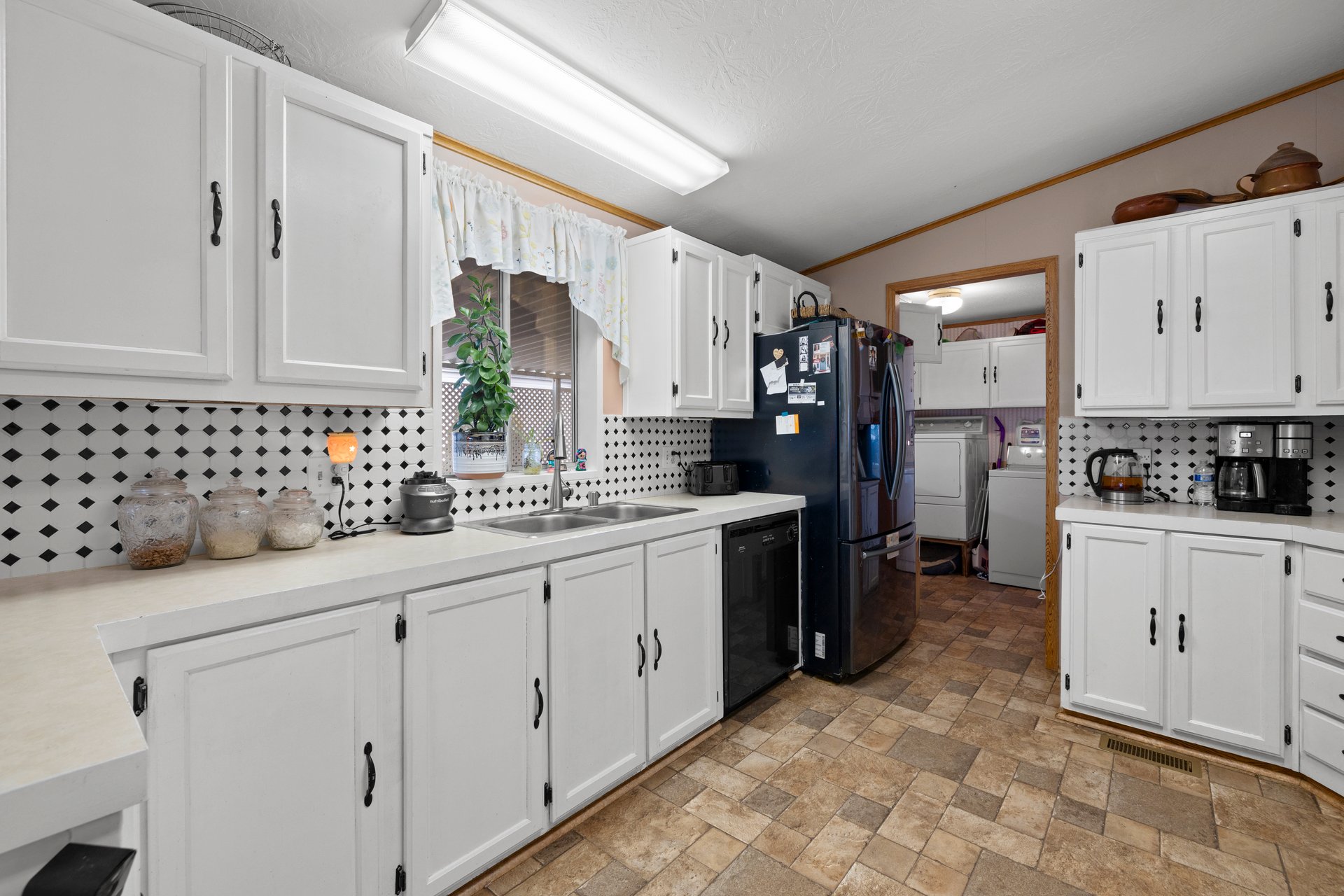 This 1,620 sq ft home offers a highly desirable split floorplan with 3 bedrooms and 2 bathrooms, vaulted ceilings and numerous windows providing light, privacy and flexibility. Two separate living areas plus a dedicated dining space create plenty of room to relax and entertain. The updated, open kitchen is the heart of the home and comes fully equipped with all-electric appliances, including refrigerator, range, dishwasher, and garbage disposal. Storage abounds! In addition to drawers, cupboards and counter space, pantry cupboards are also conveniently located in the kitchen! The laundry area is adjacent to the kitchen and is outfitted with a utility sink, storage, and washer, and dryer.