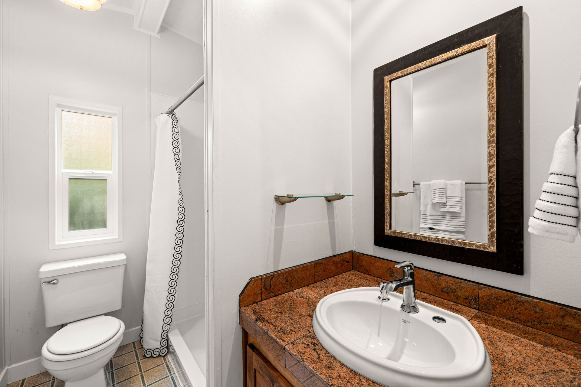 The spacious family room is filled with natural light from large windows, creating a warm and welcoming space. The split floor plan provides privacy with the primary bedroom located on one end of the home. The primary bathroom has been tastefully updated with a new vanity, sink, lighting, and toilet. The primary bedroom is spacious enough to accommodate a king-size bed.