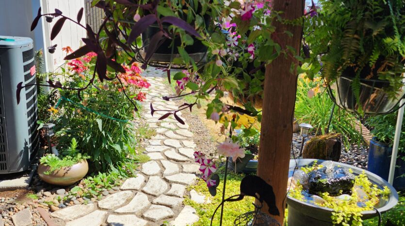 Outside your front door you will enjoy a closed covered deck that has been sided with pine wood and windows. What a great place to set your plants or sitting chairs. The Outside has been beautifully landscaped and features a lovely stone walkway in the back yard.