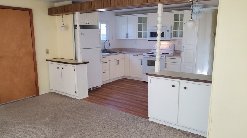 This home is a gem with a wonderful kitchen. New white cabinets, stainless sink and appliances. Dining room is in the kitchen and there is space enough for drop leaf table or larger.
