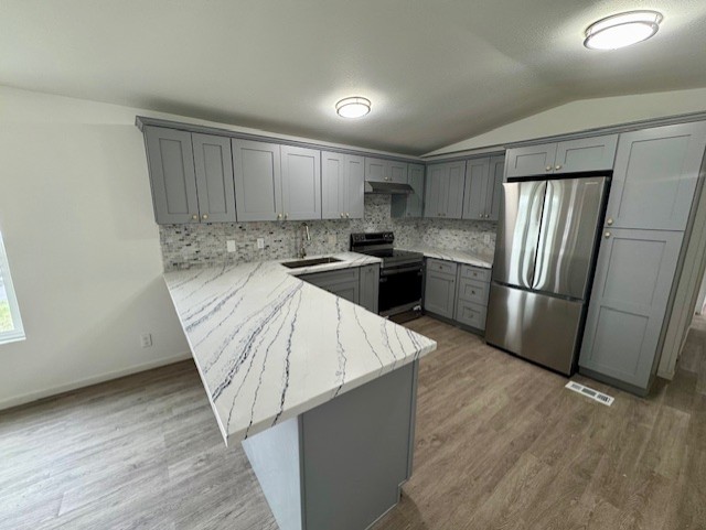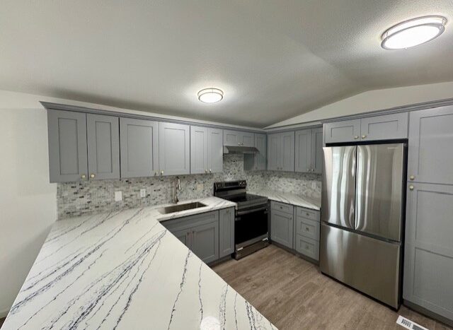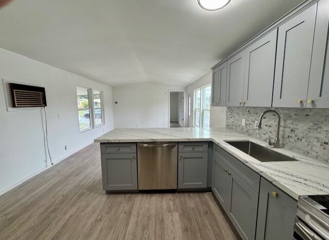 Get ready to be WOWED by this beautiful three-bedroom Fleetwood home in a family community. Cook meals in your updated kitchen which features gray cabinets, Quartz counters, oversized Stainless sink and all new kitchen appliances. There is a large eating bar that is perfect for cooking workspace. With three bedrooms there is plenty of room for a home office, craft room, gaming room; you choose. The oversized bathroom features a double gray cabinet vanity and two porcelain sinks. Finished with detailed Quartz counter tops.