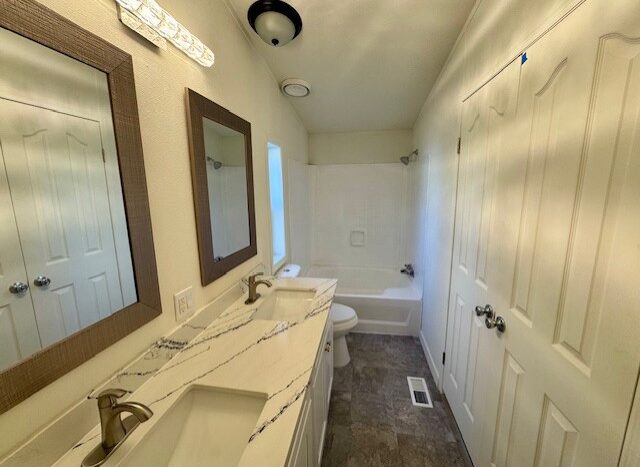 Beautifully, updated home located in a quiet, family community. Be prepared to be “WOWED” as you walk in. This home features a living area and a large family room with dining area. The spacious kitchen features new stainless appliances & smooth top cooking, white cabinetry, ample quartz counters for food prep and a decorative tile back splash. An oversized stainless undermount sink with single lever handle & tile flooring complete the look. The primary suite features it’s own bathroom with French Door entrance. Two guest bedrooms and guest bath at the opposite end of the home. An oversized laundry room situated off of the kitchen has access to the carport. Offered with new flooring and carpet throughout.
